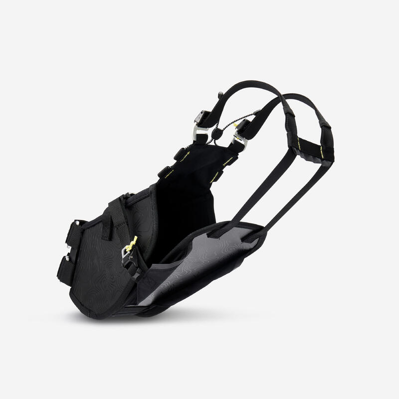 Ce harnais de selle est conçu pour le sac étanche de selle Rockrider (réf. 8912304). Sa construction robuste assure résistance et stabilité, vous permettant d’explorer les terrains les plus difficiles