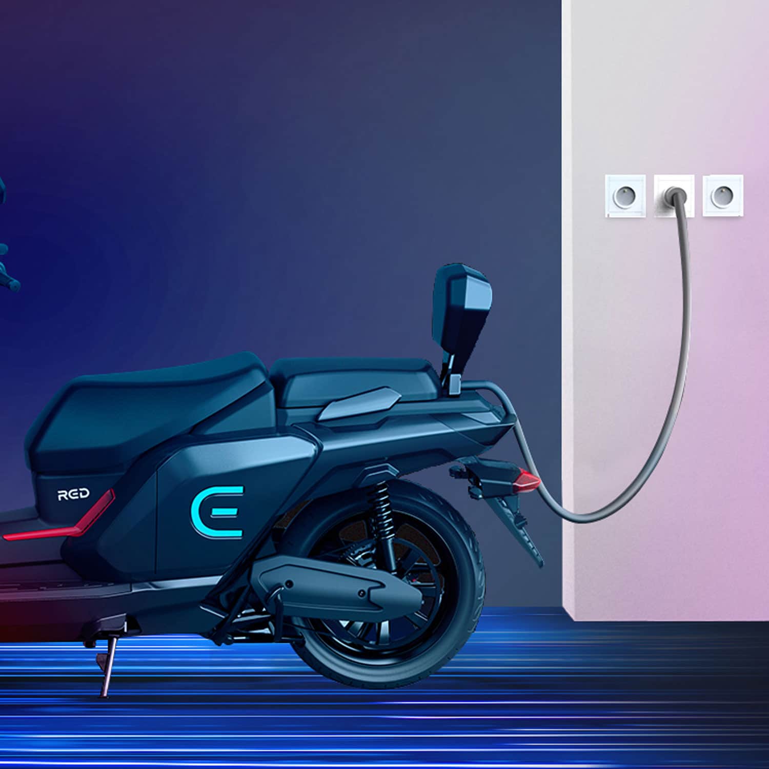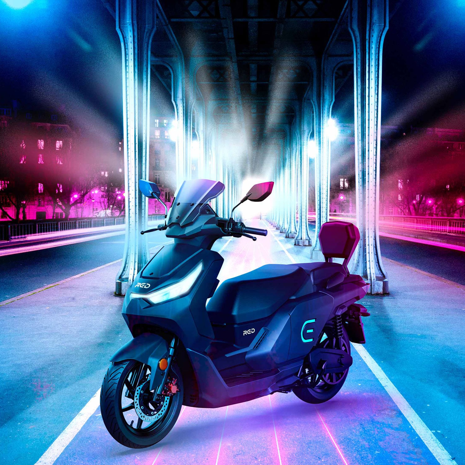 Le RED Electric E50, un scooter électrique équivalent 50 cm3 ultra moderne avec son tableau de bord connecté, son GPS intégré et avec une autonomie record pouvant aller jusqu’à 300 km avec 3 batteries supplémentaires.