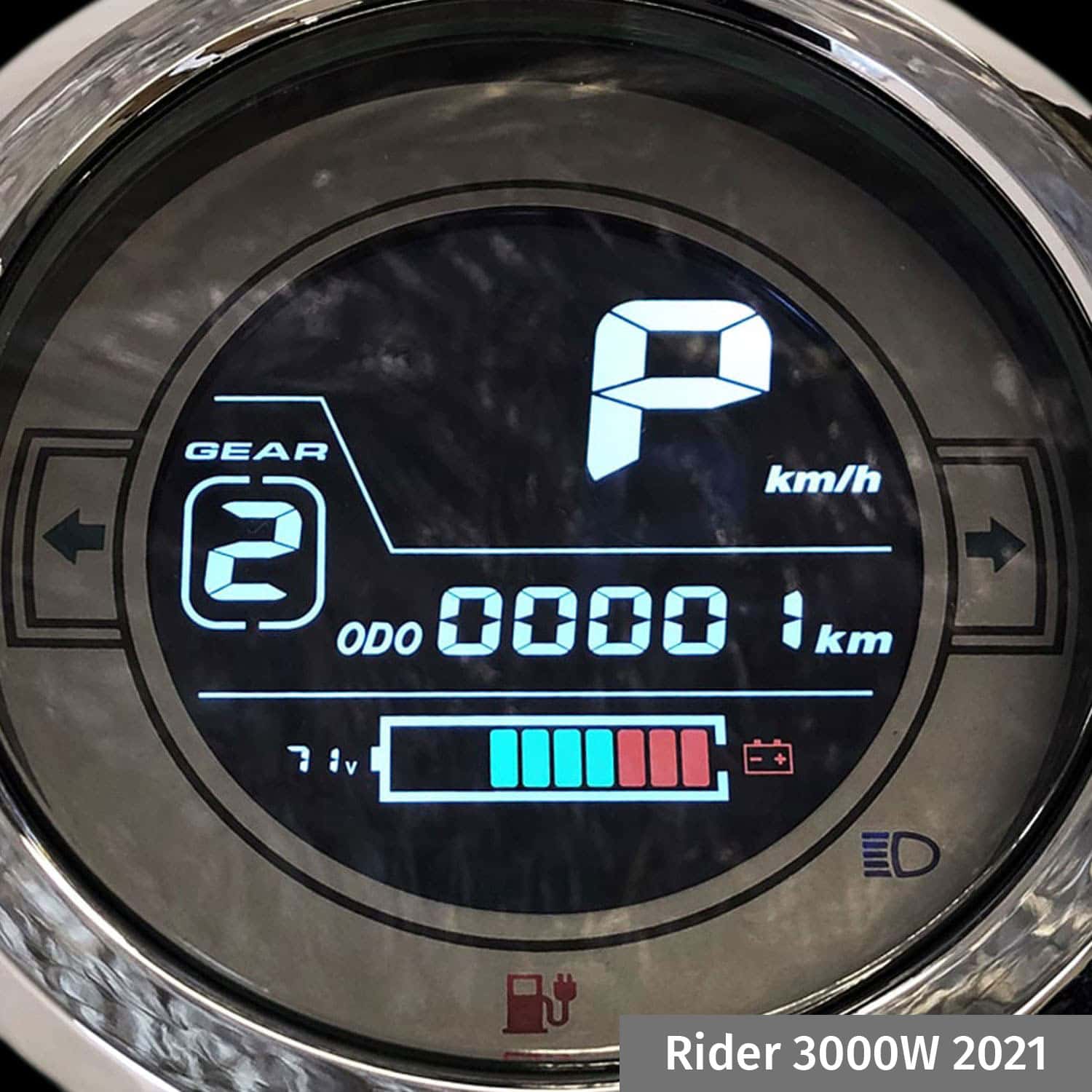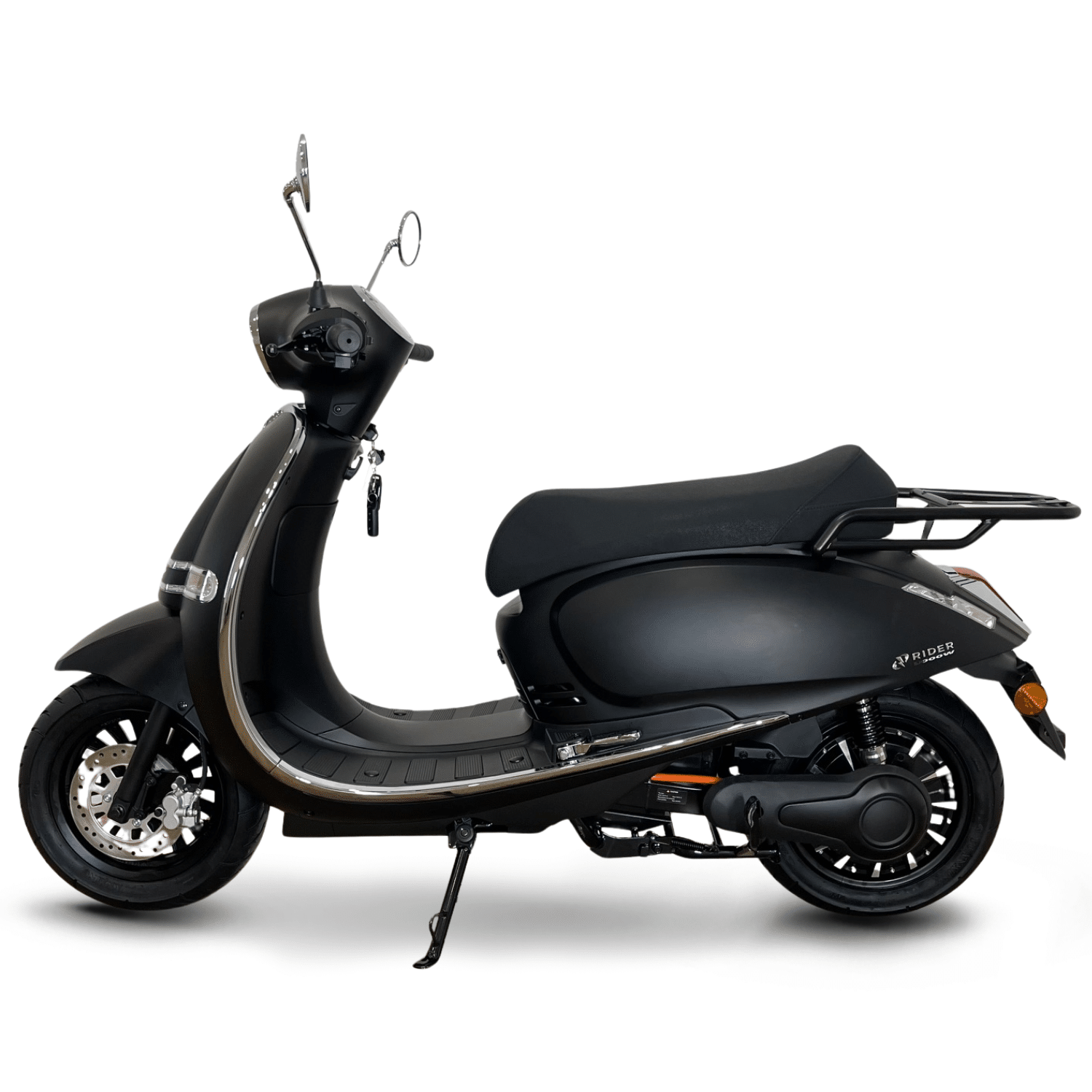 Nouvelle version 2024 : batterie 4 kWh (+10% d’autonomie). Le nouveau Rider 3000W est un scooter électrique accessible sans permis qui cumule les bons points : élégance, bonne autonomie, accélérations, confort et tenue de route. Les photos présentées sur cette page sont susceptibles de comporter des éléments en option et ne sont pas contractuelles.