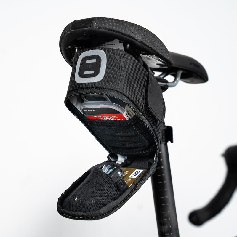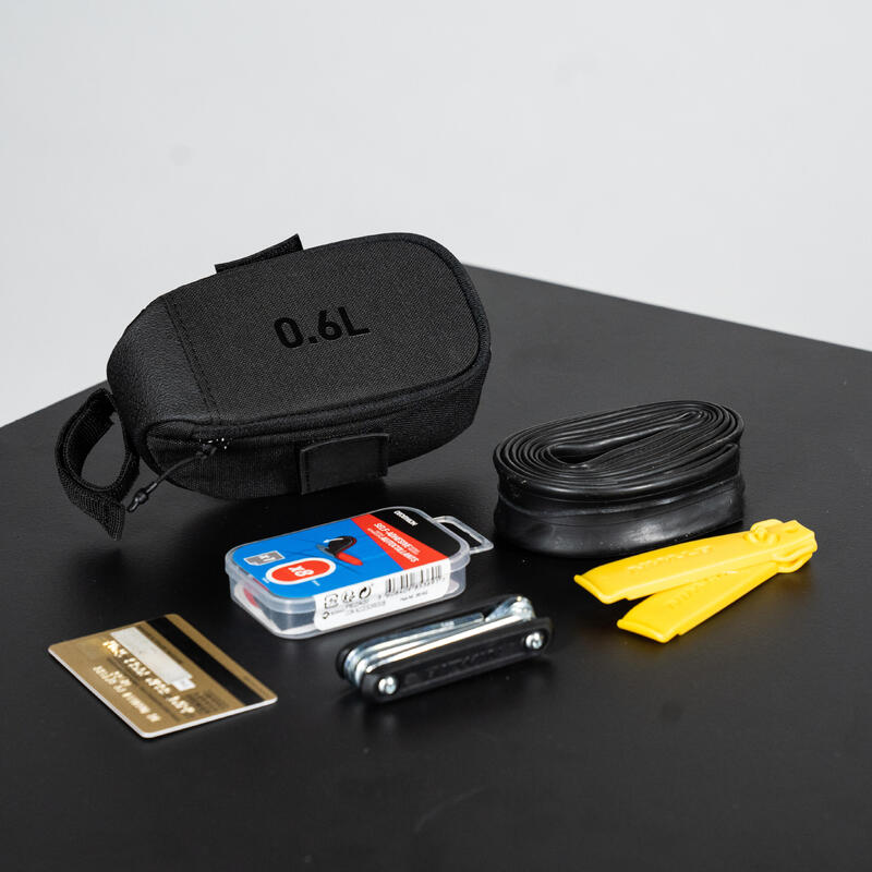 Une sacoche semi-rigide de 0,6L, facile à mettre sur tous les types de selles de vélo et avec un accès facile aux affaires.