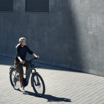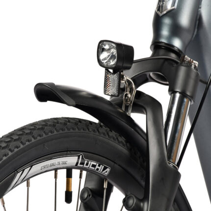 Le cadre compact s’intègre parfaitement aux espaces restreints. Il est compatible avec les cyclistes mesurant entre 1,60 et 2,00 m (poids maximal : 90 kg). Il est équipé de garde-boue, d’éclairages (certifiés K-code) et d’une transmission Shimano 7 vitesses pour une conduite adaptative.