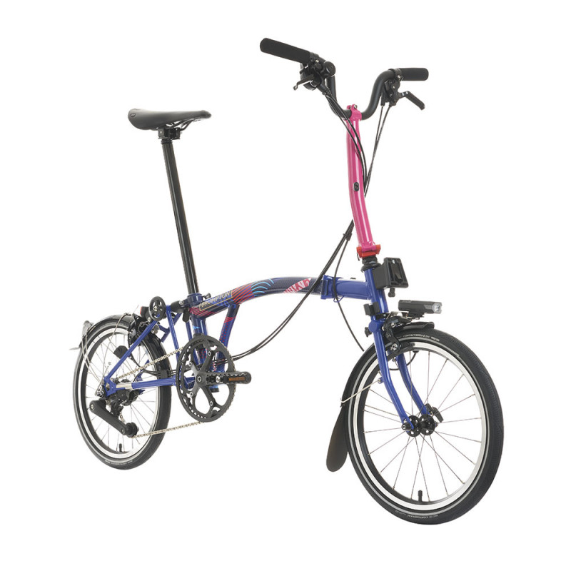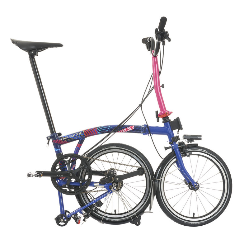 Ce vélo pliant Brompton P Line Paris Edition met en avant la nouvelle identité visuelle de l’équipe de Grande-Bretagne olympique. Les motifs sur le cadre représentent l’Union Jack stylisé pour l’occasion, par l’agence de design Thisaway. Brompton a utilisé une technique d’impression sur film thermoformable qui donne une finition éclatante. Le triangle arrière du cadre et la fourche ont un superbe coloris Arctic Blue. Notez qu’il n’existe que 1 000 exemplaires de cette édition spéciale. Chaque unité est identifiée avec une plaque unique.