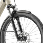 Le guidon accueille la commande ergonomique Purion 200, avec laquelle vous gérez les modes d’assistance, l’aide à la marche intelligente qui bénéficie désormais d’une fonction anti-recul, l’aide au démarrage en côte, les éclairages. L’écran couleur permet de surveiller l’heure et le pourcentage de batterie. Vous avez toutes les infos qui vous intéressent, et même une idée des watts que vous développez au pédalage.