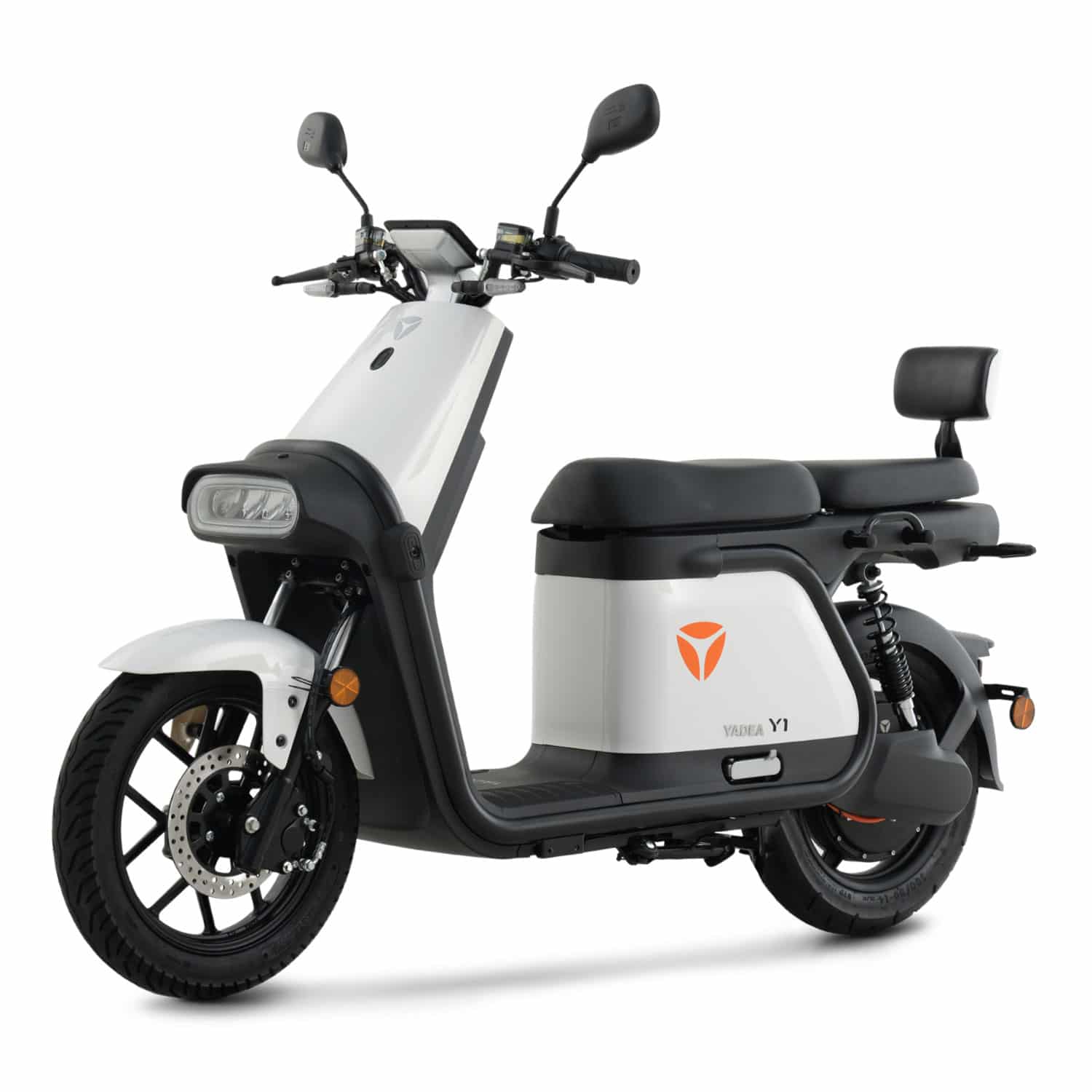 Le Yadea Y1S est un scooter électrique de livraison équivalent 50 cm3. Son autonomie peut atteindre les 85 kilomètres. Bien fini, il est notamment équipé de série d’un support de Top Box et d’une selle biplace avec dosseret.